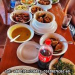 দুপুরঃ সাদা ভাত+ বাম্বু চিকেন+ বড় মাছ ফ্রাই+ আলু ভর্তা + টমেটো ভর্তা+ ডাল+ সালাদ+ কোল্ড ড্রিংকস+ চা/কফি।